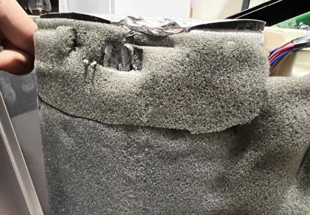 그럼 이렇게 생긴 냉각수 통을 만날 수 있게 되는데, 뚜껑과 결합한 뒤에 결로현상으로 인한 곰팡이와 부식 방지를 위해 스펀지 등을 이리저리 덕지덕지 붙여놓은 것이다. 하여 살살 만져보면 틈이 만져지며 그 선을 따라서 칼로 도려내면 된다.