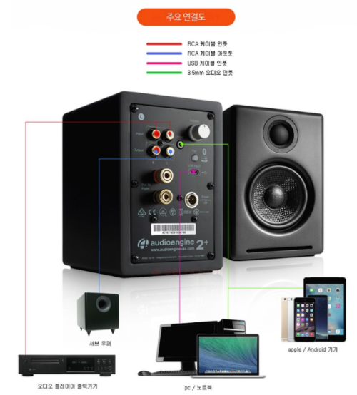오디오 엔진 A2+는 기존 A2제품에 비해 블루투스 연결이 가능한 제품입니다. 그 외에도 많은 입출력 포트를 가지고 있어 활용하는 부분에 있어서 부족한 점은 없습니다. 패키징도 생각보다 깔끔하고 가격에 비해 고급스러운 느낌이 있지만 마감 자체는 좀 떨어지는 편이니 구매하는 부분에 있어서 100% 찍힘이나 도장 문제가 없는 제품을 원하시는 분들에게는 다소 문제가 있는 스피커라 할 수 있기 때문에 민감하지 않으신 분들만 구매를 하시기 바랍니다.