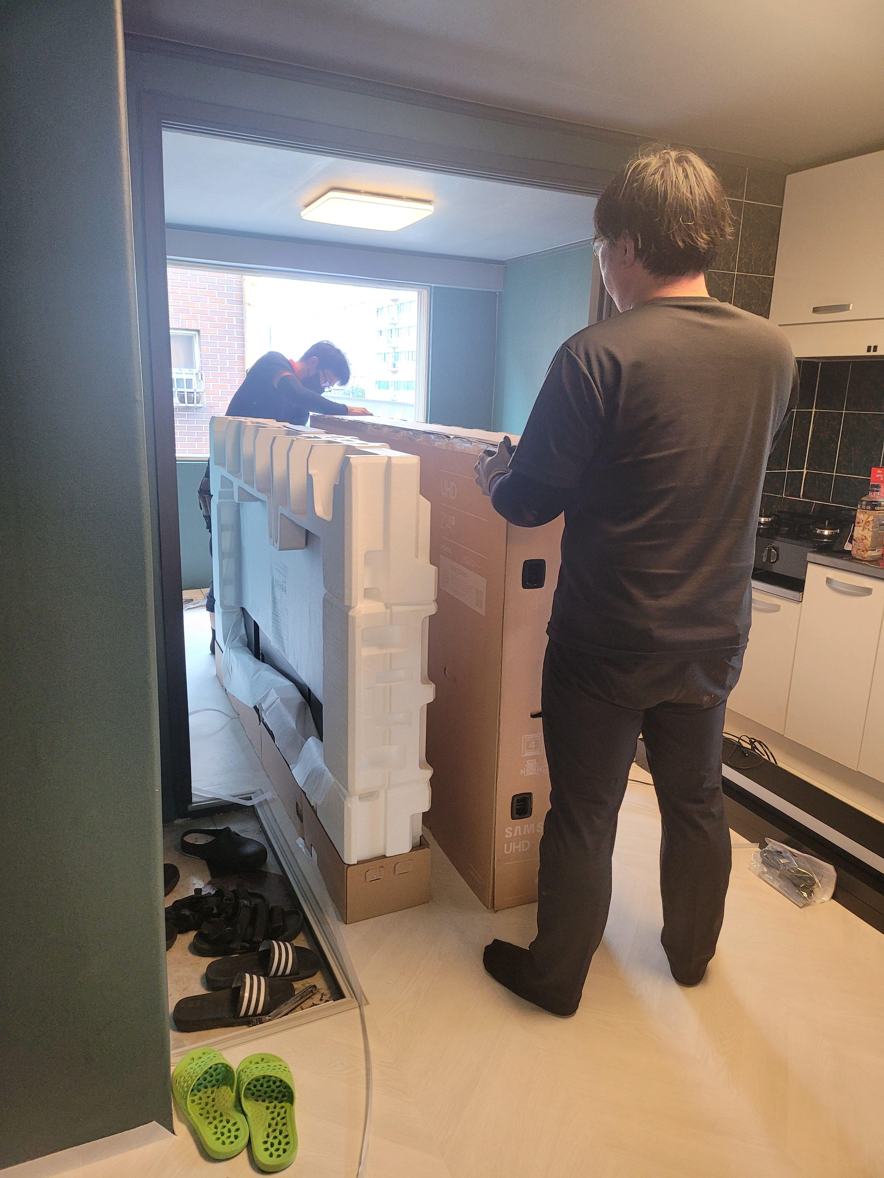 설치하는 과정에서 일단 부피가 엄청나게 크기 때문에 웬만해서는 엘베에 들어가거나 계단으로 옮기는건 쉽지가 않다. 혼자 설치한다는 건 당연히 포기해야 하며 둘이서 한다고 해도 꽤나 위험한 작업이 될 수 있다. 기본적으로 창으로 들여올 생각을 해야 하므로 사다리차 비용을 청구하지 않는 쿠팡이나 하이마트같이 자체 배송 혹은 부담을 하는 곳에서 구매해야 이득이다. 2층이니까 괜찮겠지라는 안일한 생각으로 주문했다간 피볼 수 있다. 사다리차를 따로 부르게 되면 그 비용만 10~20 정도 청구가 될 확률이 높기도 하고 높을수록 가격은 더 올라간다. 약간 비싸게 느껴지더라도 적당하다면 대기업 관련 판매처에서 구매하는 게 서로 말싸움할 필요도 없고 기사들도 친절하여 편하고 좋다.