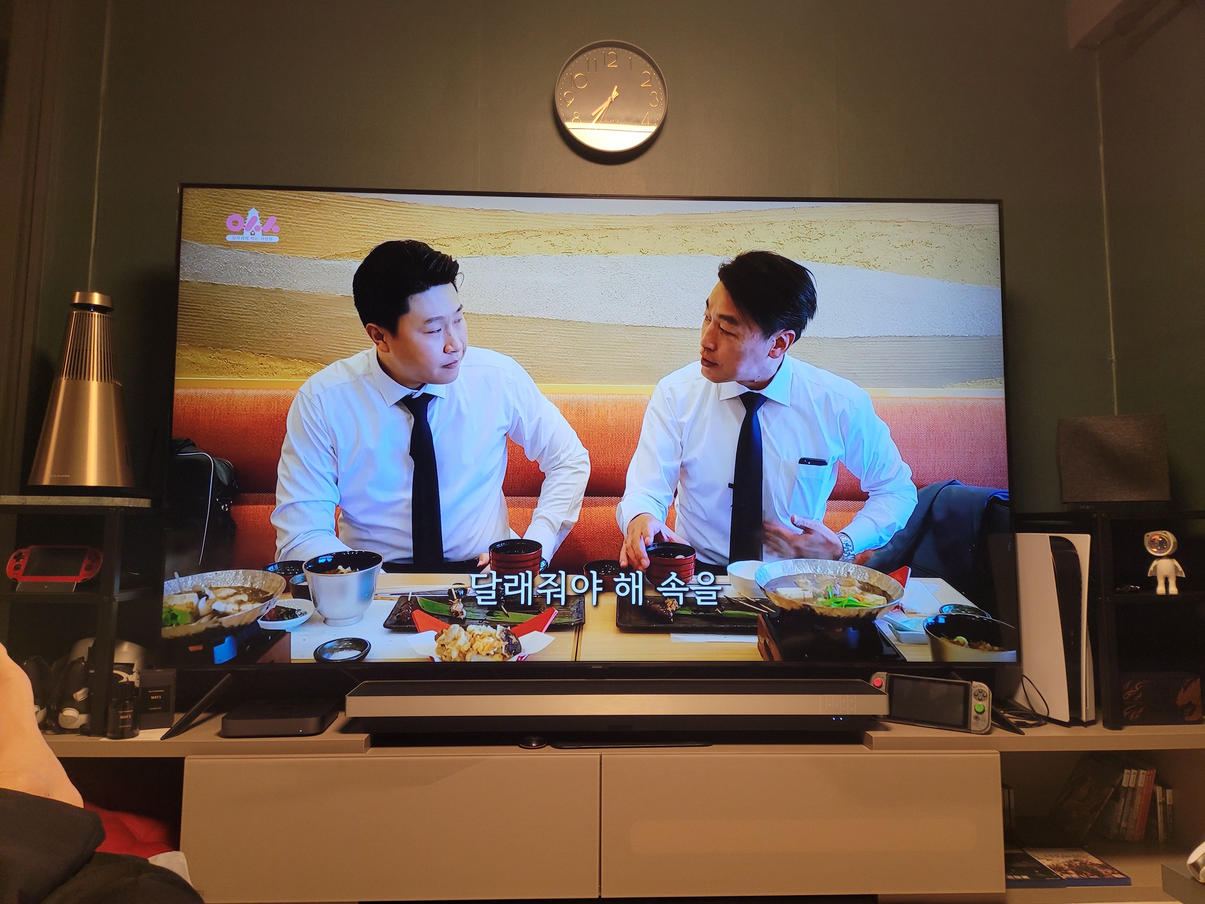 또 영화관 정도의 느낌을 처음엔 받을 수 있으나 점점 익숙해진다. 그럼에도 익숙해지기 어려운건 자막과 영상이 분리된 영상으로 화면이 크기 때문에 시청 거리가 웬만큼 멀다 하는 사람이 아니라면 자막 보랴 영상 보랴 눈이 빠르게 피로해질 수 있다.