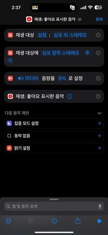 4. 단축어 실행하면 유튜브 뮤직에서 좋아요 표시한 음악을 바로 나올 수 있게 했습니다.