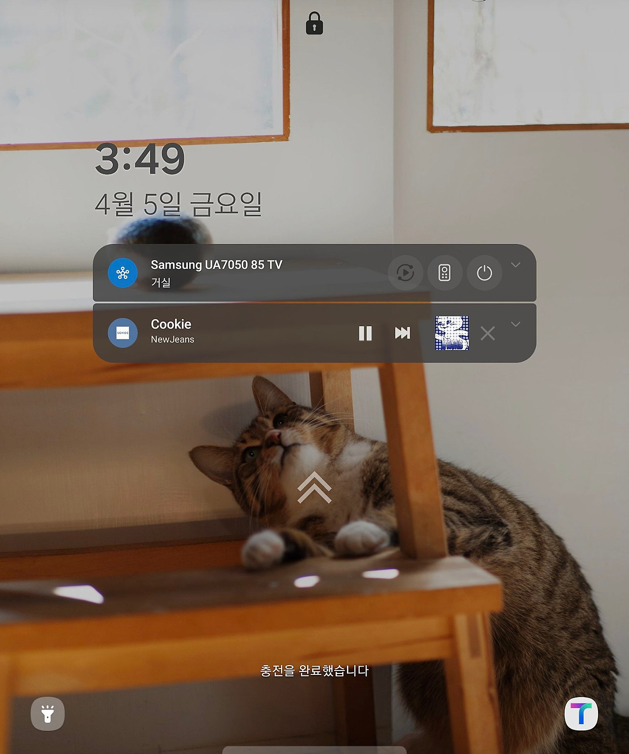 안드로이드에서는 이렇게 잠금화면과 알림센터에서 컨트롤이 가능합니다.