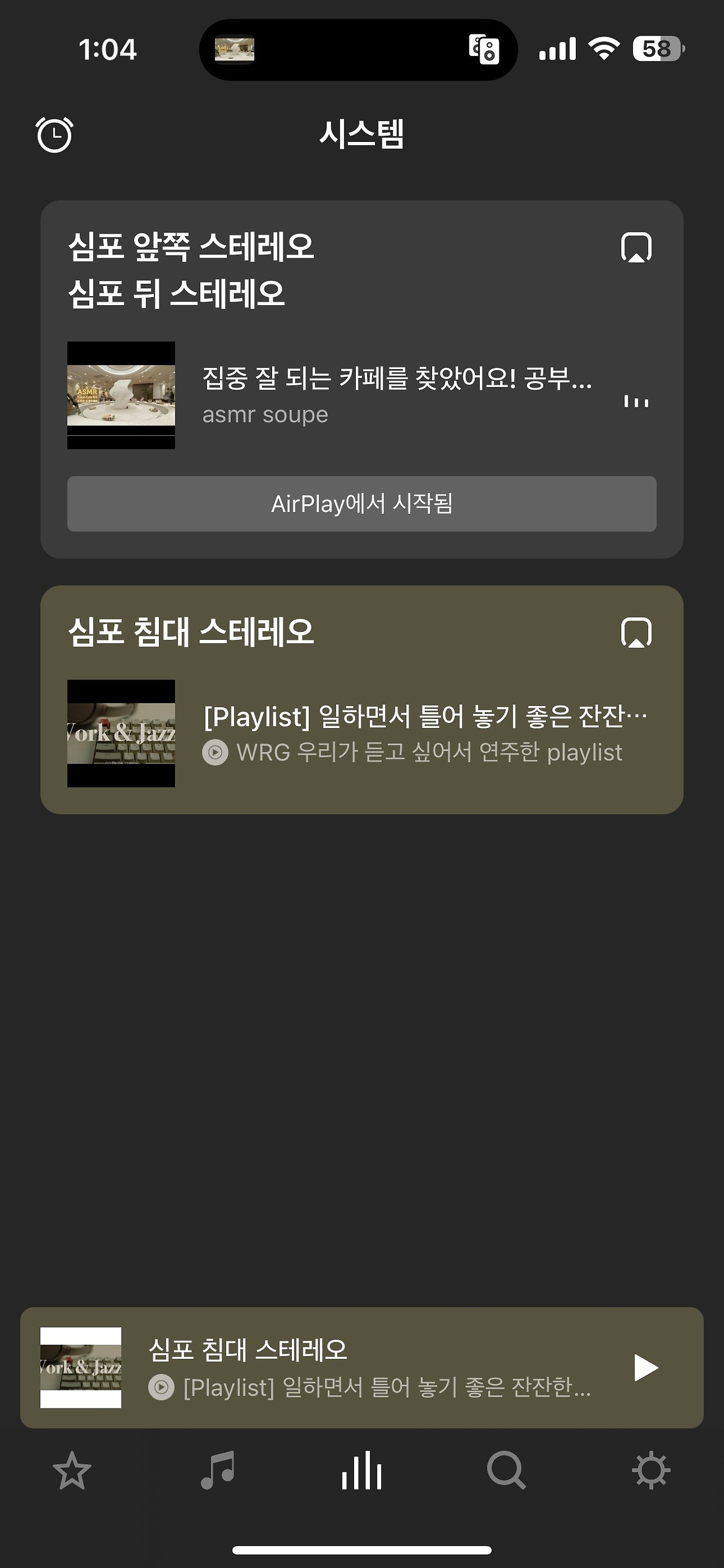 단점 = 단축어 지정하지 않으면 매번 스피커 재생 그룹을 터치해줘야 함. 일시정지 후 몇 분 뒤 해제되는 게 크롬보다 빠르게 끊김. 한번에 하나의 정보 전송만 가능해서 여러대 각각 다른 음원 재생 불가