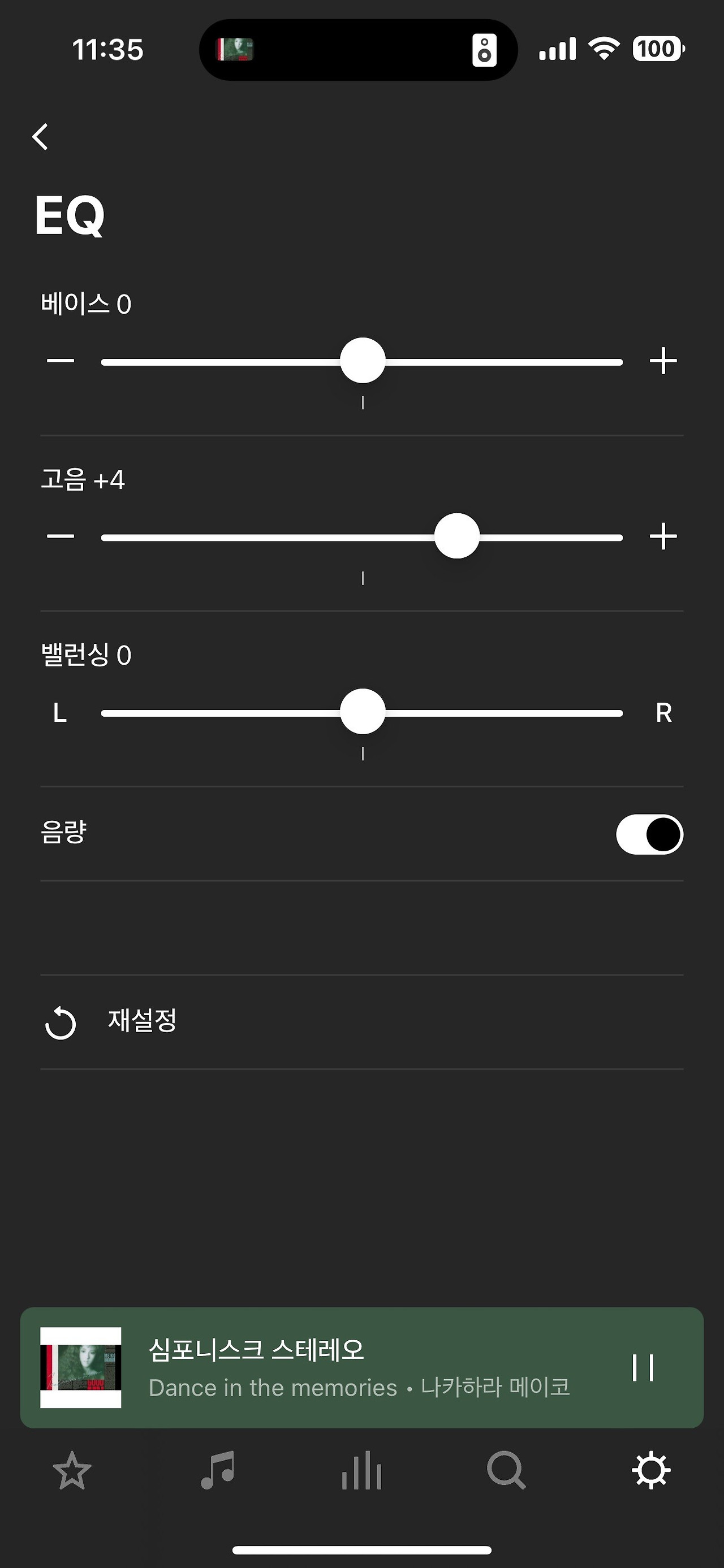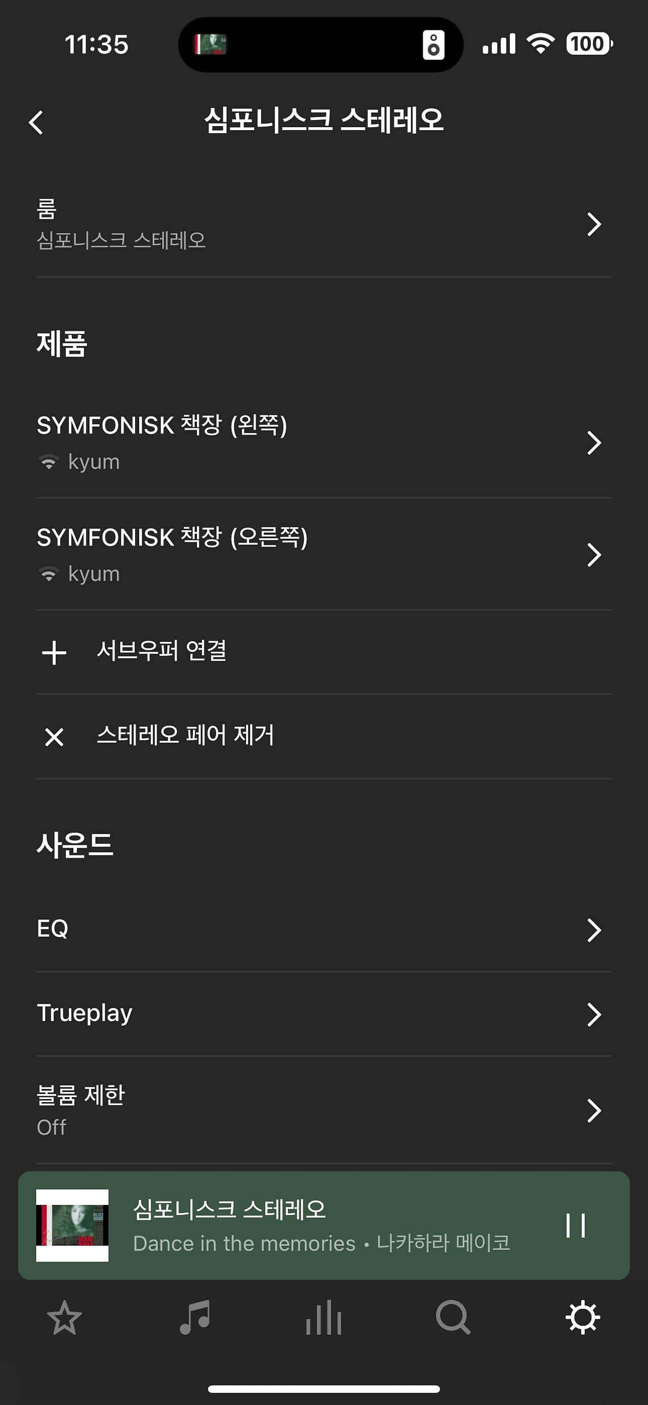 소노스 앱 설정에 들어가시면 EQ조절 및 Trueplay 룸튜닝이 가능합니다. 룸튜닝을 하기전에 EQ를 조절하면 룸튜닝 이후 다시 EQ를 조절해야하므로 룸튜닝을 우선한 뒤에 조절하셔야합니다. 굳이 룸튜닝을 하지 않아도 되긴하지만, 명로도에서 차이를 보이므로 먹먹하거나 벙벙거리는 소리를 좋아하지 않으신다면 꼭 진행하셔야하는 작업으로 생각해주시는 편이 좋습니다.