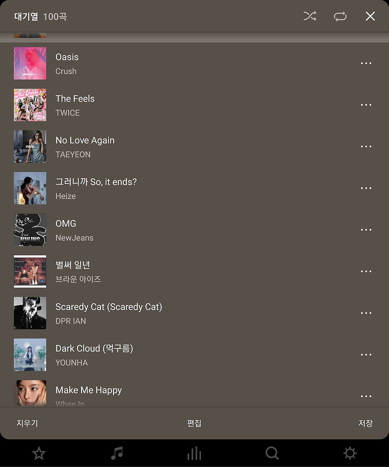 (유튜브, 애플뮤직에서 곡 스테이션 기능 재생시 대기열 교체로 해야 대기열에 제대로 표시되기도 합니다.)
