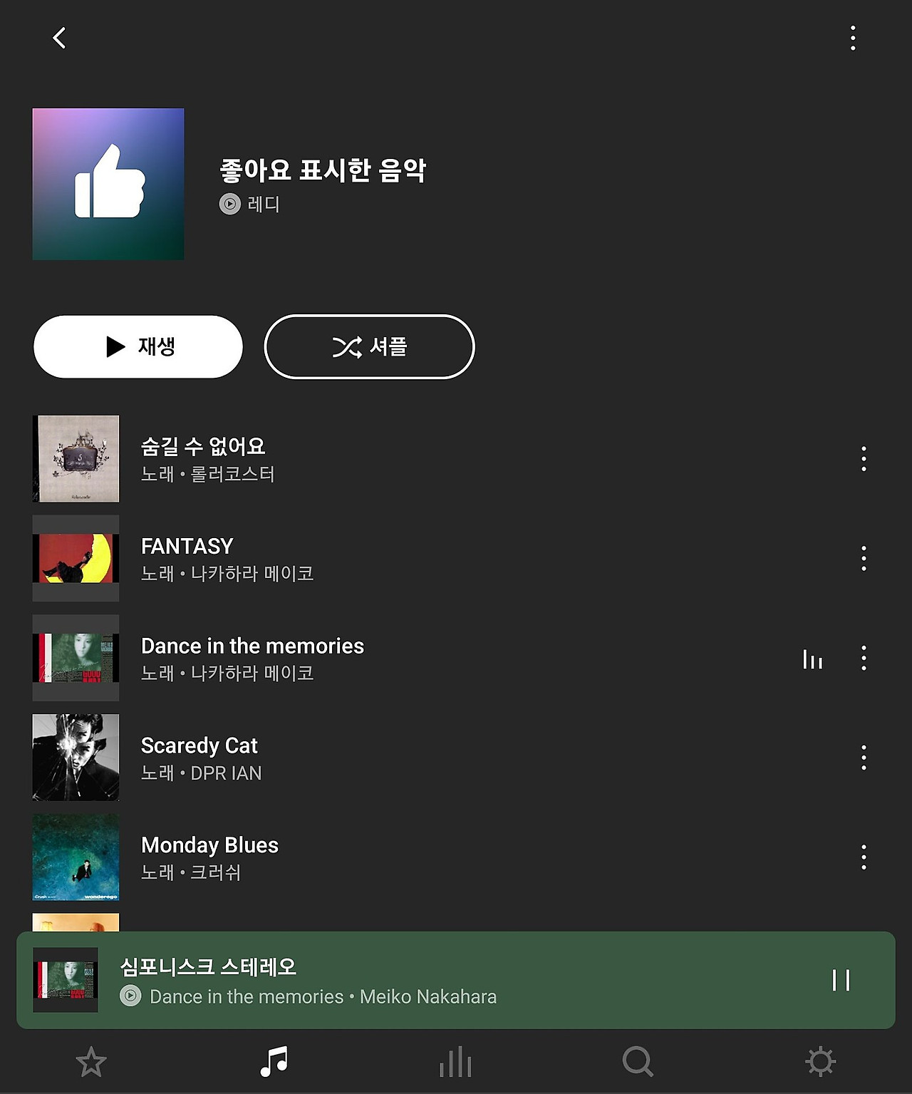 리스트, 반복재생, 랜덤재생등 기본기능들이 안되는 것은 없으며 기본에는 충실합니다만 아무래도 네이티브 앱은 아니다보니 간혹 부족한 부분이 보이는 점은 아쉬울 수 있으나 플레이 리스트를 기존에 듣고있는 것들로 주로 들으시거나 만들어두신게 있다면 그닥 불편하진 않으실겁니다. 방법이 조금 다를 뿐 할 수 있는 기능은 웬만한건 다 됩니다.
